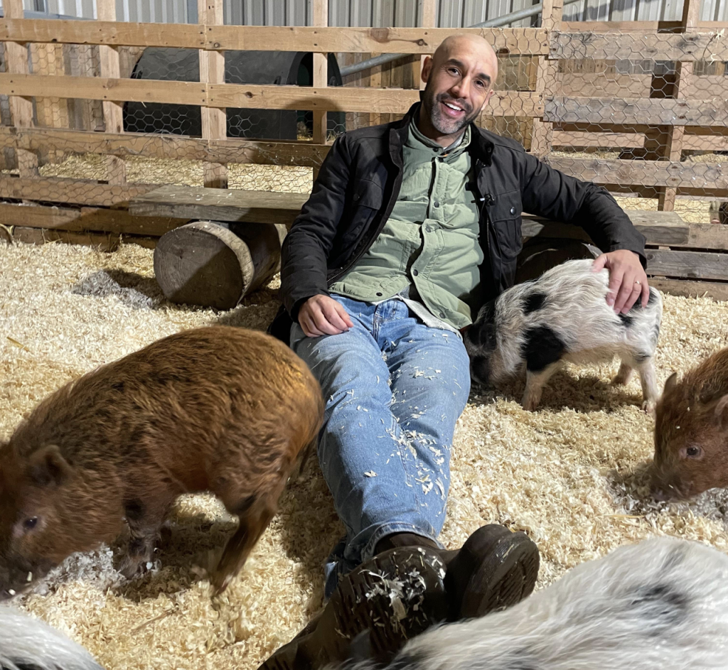 Kew Little Pigs stars on ITV News, with host Alex Beresford thrilled to meet the gang
