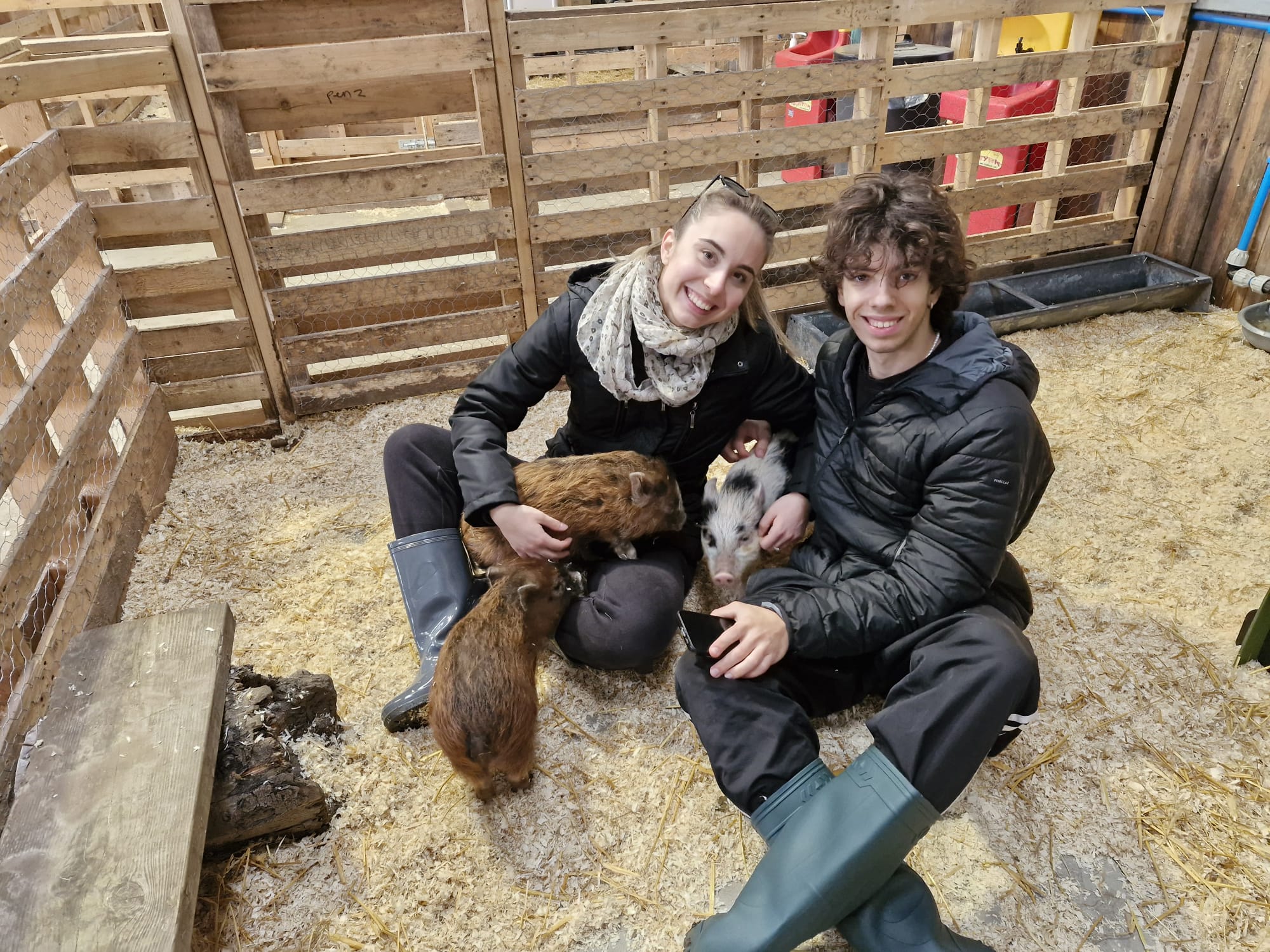 Lorenzo and Diletta, from Parma in northern Italy, made the journey to Buckinghamshire after discovering the famous miniature pig attraction Kew Little Pigs in Amersham online and deciding they simply had to visit.