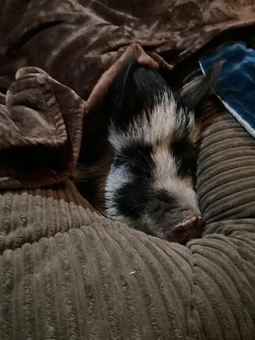 “We have had our two mini pigs Lula and Rocco for almost 2 years now, they are a huge part of our family and have earned themselves many nicknames due to their unique personalities and traits. Lula loves a belly rub and is very talkative whilst Rocco is happiest snouting through our shaggy rug. They have a very close bond and will snuggle up snout to snout under their blankets together." (Testimonial anonymous - January 2023)